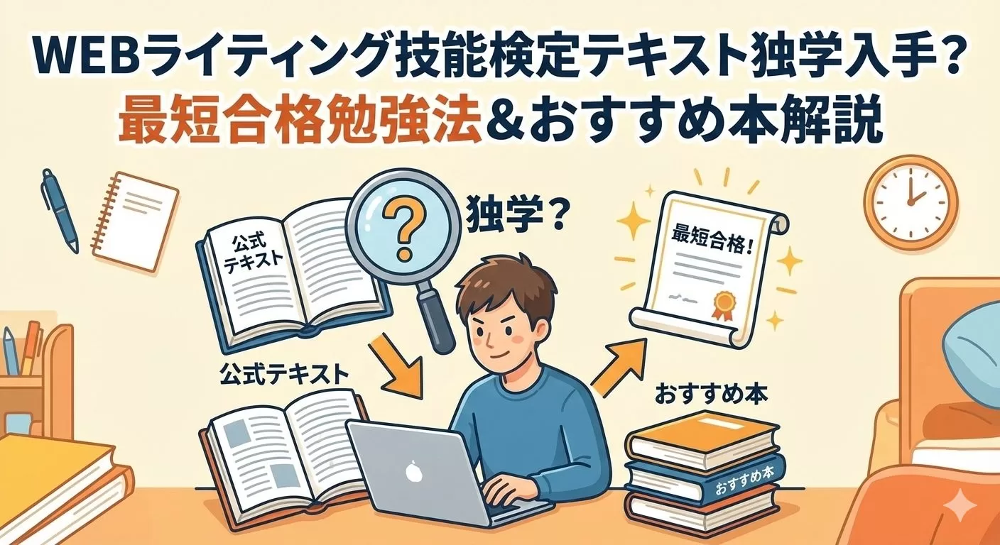 WEBライティング技能検定の公式テキストの入手ルートから、独学で目指す際のリスクと対策、さらには合格を強力にサポートするおすすめの市販本まで、徹底的に掘り下げていきます。